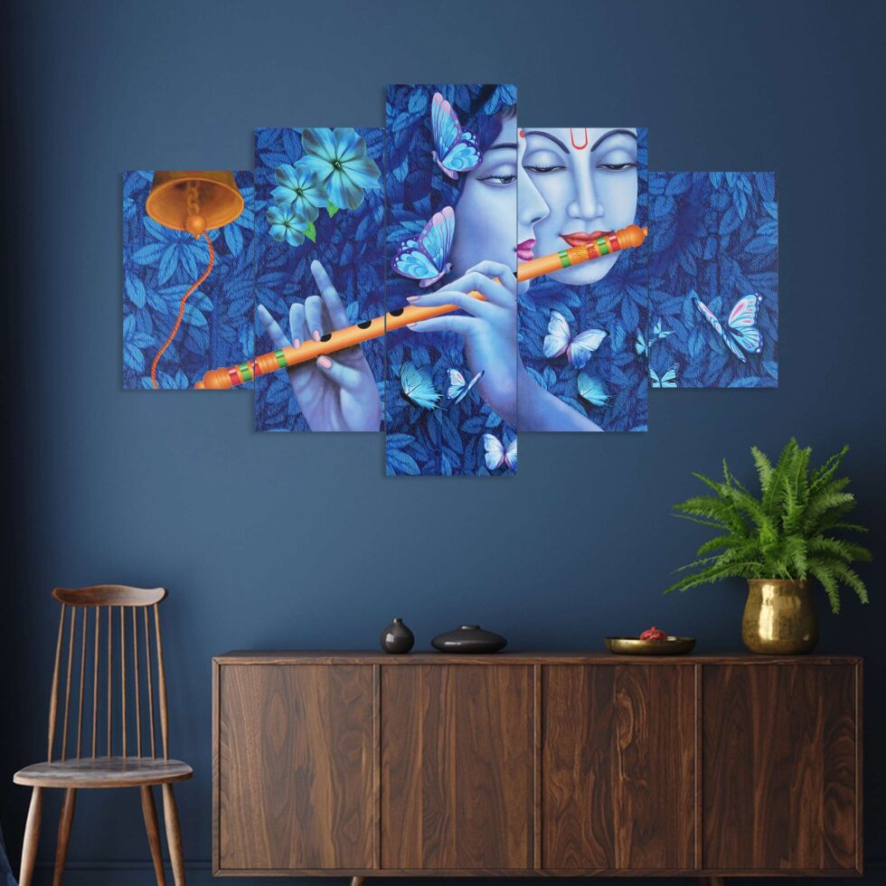 Radhe Krishna Set of Five 3D Framed Paintings for Wall Decoration – Ideal for Home, Living Room, and Bedroom (75 x 43 CM)